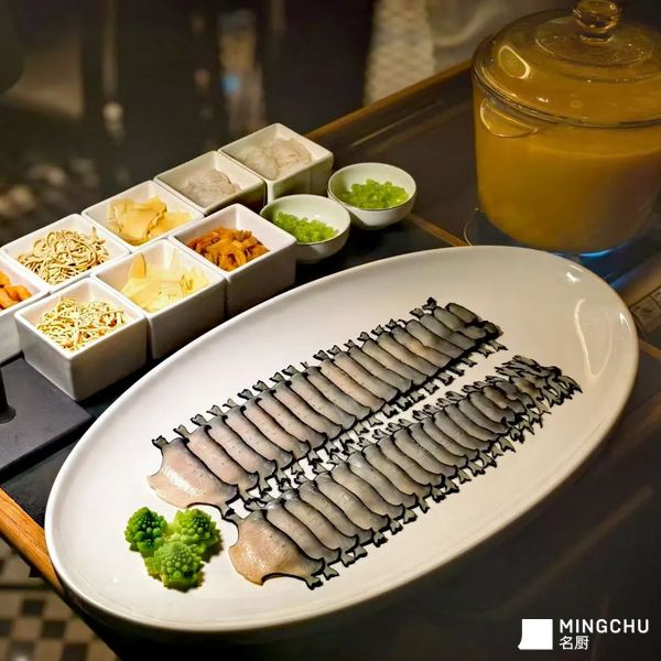 当砂煲携滚烫高汤上桌,鲜活黑金鲍在沸汤中缓缓舒展肌理。堂灼的温度锁住深海本味,每一片切得厚薄均匀的鲍肉,裹着高汤入口,弹嫩中带着胶质感,鲜醇直抵舌尖,这是属于餐桌的深海仪式感。