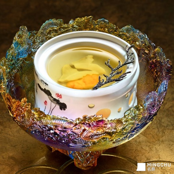 这道汤品灵感源自苏东坡的《水调歌头》的「明月几时有」,将诗意与美味结合,展现广东饮食文化中抚慰人心的温情「靓汤」。由唐排、老鸡、鹧鸪等优质食材慢火炖煮 5 小时,汤底清澈。紫菜以鸡脚汤重塑成树形,象征生机,饮用时放入汤中舒展,释放鲜美海洋气息,增添层次与清新。这不仅是一碗汤,更是充满诗意与匠心的味觉飨宴。
