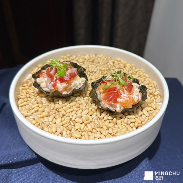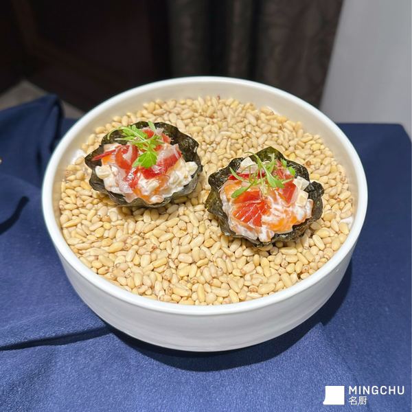 将经典的蜜瓜三文鱼火腿,加入海苔和塔塔酱