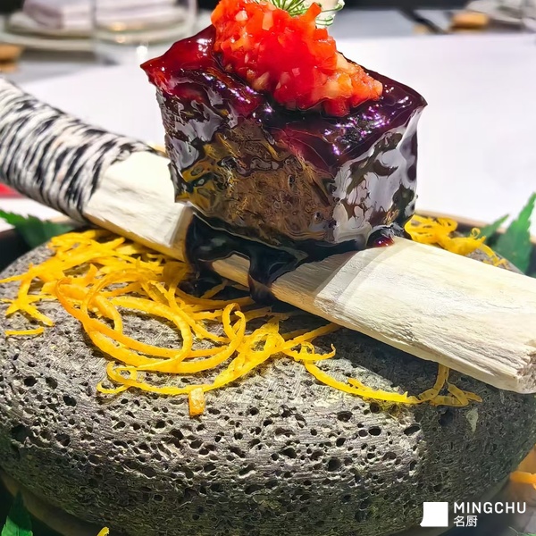 结合传统文火牛肉,将新会陈皮的香醇和牛肉的丰腴结合,再增加烧椒酱提升风味性,陈香馥郁、酱甜平衡、酥烂入味。文火牛肉在于“慢”与“火候”,文火慢炖是对时间的尊重,将普通食材转化为极致美味。陈皮的“清”与牛肉的“厚”之间达成巧妙平衡,陈皮不仅是香料,更是调和者,赋予了厚重菜肴以清新高雅的气质。