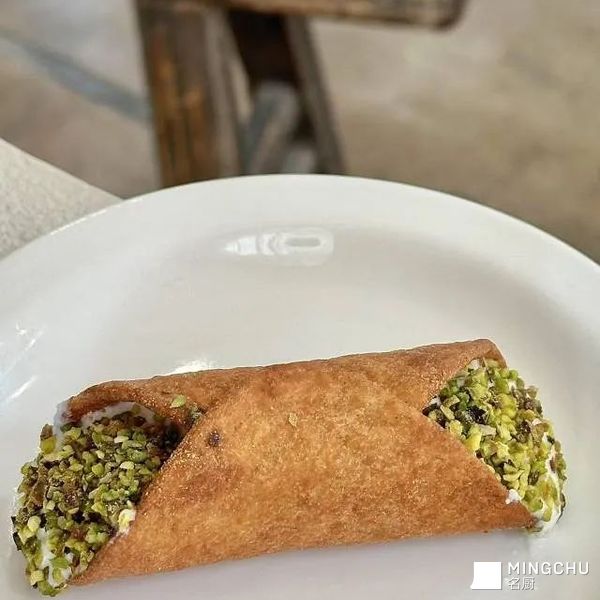 它的核心是酥脆的油炸面皮筒(传统用芦荻管塑形,现多用金属模具),包裹以乳清干酪(Ricotta)为基底的甜馅,常混有巧克力碎、柠檬皮、肉桂,两端点缀开心果碎或糖渍樱桃。传统做法讲究面皮擀至极薄(约0.5mm),炸至金黄后现填内馅,避免外皮吸潮变软;部分店铺会在面皮内侧涂巧克力层延长酥脆度。