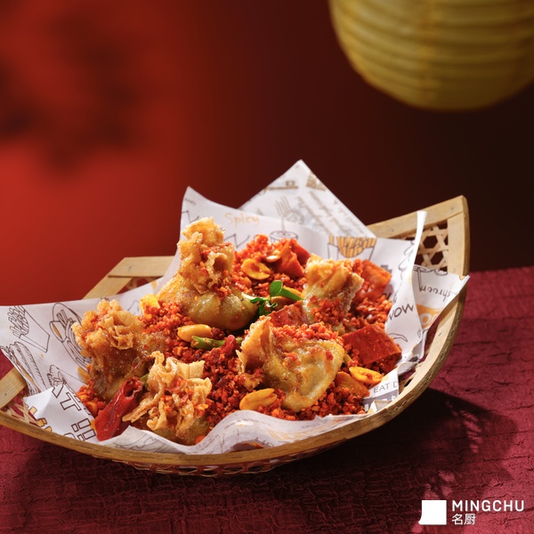 【创意来源】以经典云吞为灵感载体,通过酥炸将其塑造成饱满的“金福袋”形态。创作核心在于对经典香辣风味的重构——调配出独门飞红香辣料,既保留传统椒香精髓,又融入更适合现代的复合味型,让每一口酥脆都包裹着熟悉的惊喜。【风味特点】云吞酥炸后形似福袋,以黄飞红香脆椒、黄飞红碎碎椒配之,金黄酥脆,红红火火好寓意。
