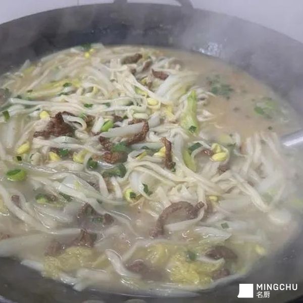 炝香既成,一瓢清水下去,“哗——”地一声,像是给激昂的乐章注入了一段深沉的休止。热闹的爆响霎时沉静了,取而代之的,是锅底细密的咕嘟。那被热油禁锢的葱香、虾鲜,便在这清澈的水中缓缓释放、泅开,化成一锅日渐醇厚的、奶白色的汤底。这时候,腌得恰到好处的肉丝滑进去,黄豆芽与小白菜也投进去,汤面便有了骨骼,有了色彩。最后,主角登场——手擀的面条,匀称、筋道,带着手掌揉压的力道与温度,翩然入水,在汤里沉浮、舒展,像绶带,也像游龙。