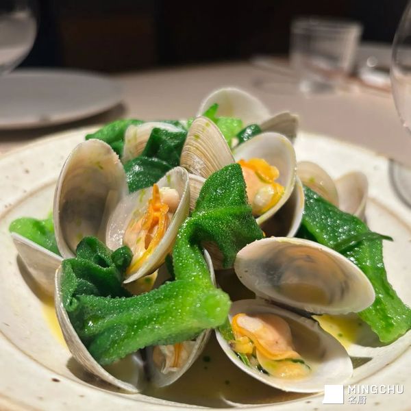 这道菜的核心创意是清爽与鲜美的碰撞。冰草的脆爽和天然咸味,与蛤蜊的鲜嫩多汁形成了绝妙的口感与风味对比。它的设计理念是打造一道低负担、高鲜味的夏日开胃菜,用最简单的突出食材本身的鲜美。