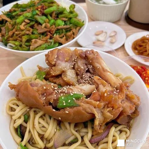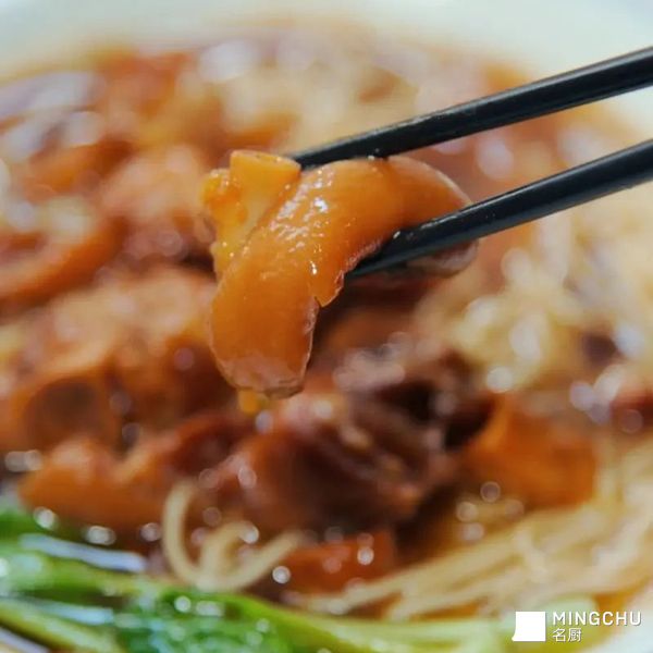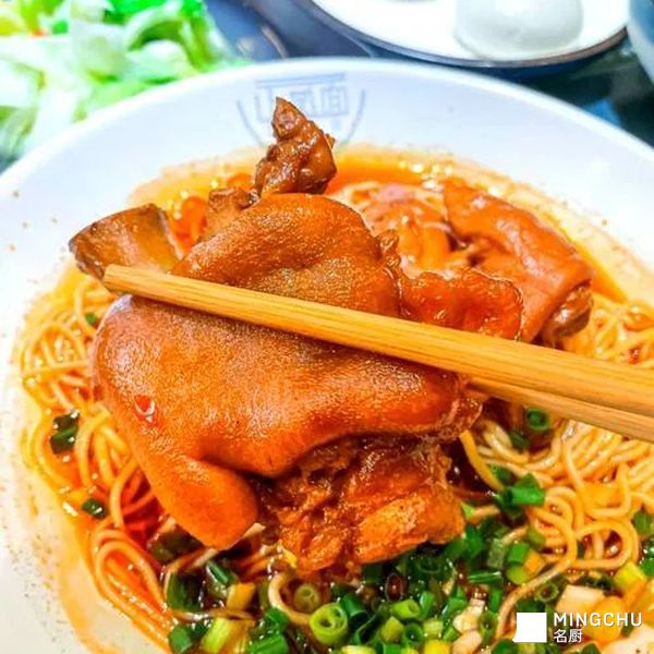 然后,重头戏来了。那炖得烂熟的蹄花,被一双筷子轻轻夹起——有时是整个,豪气地卧在面山顶上;有时是切开了,颤巍巍的几大块,皮肉将离未离。它落在汤里,像一朵肥腴的白云坠入温暖的湖泊。皮是半透明的,胶质浓厚,闪着诱人的光泽;肉则酥烂到用舌尖一抿即化,只留下一腔丰腴的香。筋络最好,软糯黏唇,是这碗面里最缠绵的滋味。