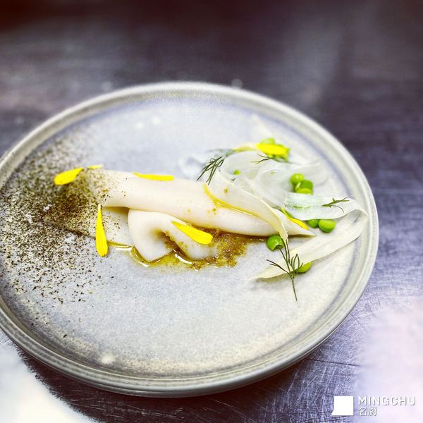 东海枪鱿鱼、腌渍白芦笋、山椒柚子、海苔