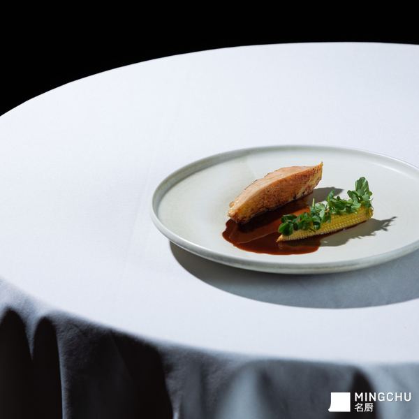 盐麴桂花熟成布雷斯鸡胸、玉米笋、板栗泥、雪莉波特马德拉鸡汁