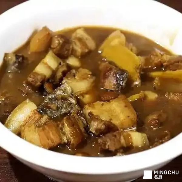 更家常些,便是与五花肉同炖。肉须得是带皮的,切得方正,先下锅煸炒出油,焦黄了,烹了黄酒,加了酱油与糖,滚水下去,才将那斩了件的鱼鲞放进去。炉火调得小小的,任它在砂锅里咕嘟着。肉里的丰腴,慢慢化进汤里,又被那干渴的鱼鲞一丝丝吸了去;鱼鲞的咸鲜与海味,也反哺给猪肉,去了腻,增了韵。炖到汤汁浓稠,肉酥烂,鱼鲞也变得格外软糯,边缘甚至有些胶质的粘口。舀一勺浓油赤酱的汤汁浇在白米饭上,直能叫人扒下去两大碗。冬日的夜晚,这样一锅热腾腾地端上桌,满屋都是踏实的、富足的暖香,窗玻璃上结着雾气,将外头的寒风严实地隔开了。
