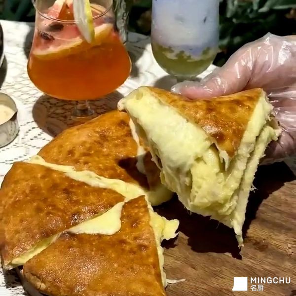 食材特点 饼皮:采用经过发酵的面团,经过煎烤后外层呈现出诱人的金黄色,口感焦香有嚼劲。