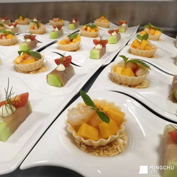 鲜虾芒果挞拼西班牙火腿配蜜瓜