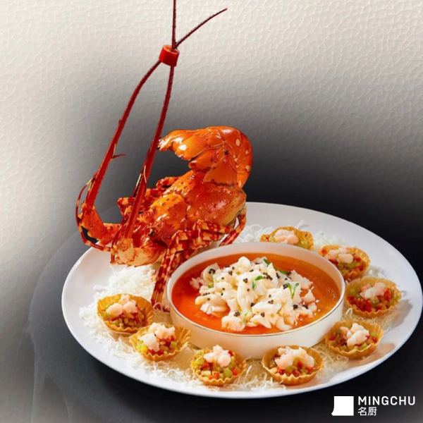 源于粤菜对食材本味与造型美学的双重追求,借龙虾形似龙的体态,结合“龙腾四海”的吉祥典故,适配高端宴席的喜庆氛围与礼赠寓意。