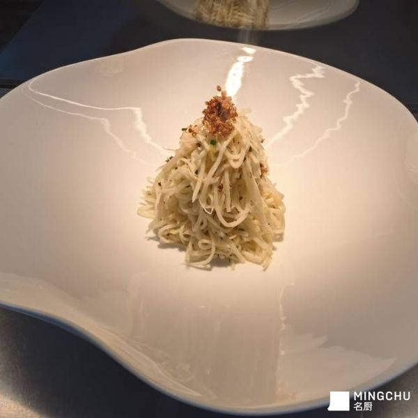 以时令甜笋为核心,搭配沙葱、摘麻花等山野食材,用葱油激香、泡椒提酸,兼顾脆嫩口感与清新风味,突出食材本味的同时打造山野田园风凉拌菜。 凉拌葱油甜笋丝:甜笋丝焯水过冰锁脆,佐以葱油、沙葱、炸脆的摘麻花与泡椒调味,酸香交织、脆嫩爽口,是解腻开胃的春日时令佳肴。