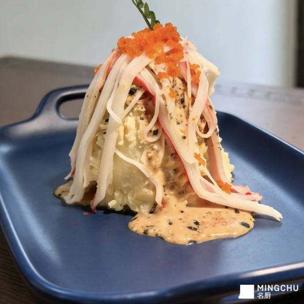 - 视觉亮点:火山造型吸睛,橙红鱼籽与米白蟹柳形成鲜明色彩对比,摆盘精致,自带社交传播属性。