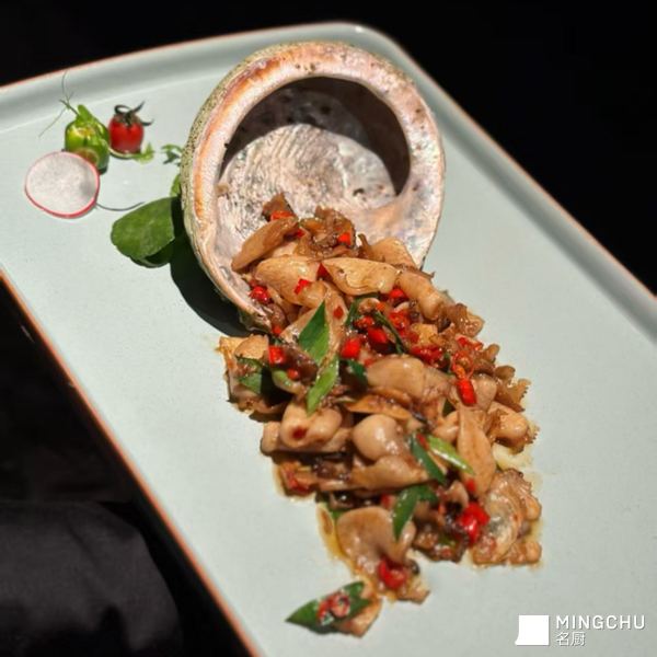 这道菜的辣度来自鲜辣椒和小米辣,既能激发鲍鱼的鲜,又不会掩盖其本身的醇厚口感,是典型的湘式海鲜做法,很适合嗜辣的食客。