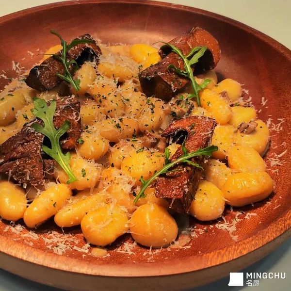 结合中国云南牛肝菌本土食材和意大利土豆丸子融合,提取菌菇类汤汁浓缩到土豆丸子里面风味独特激发味蕾体验素食爱好者首先。