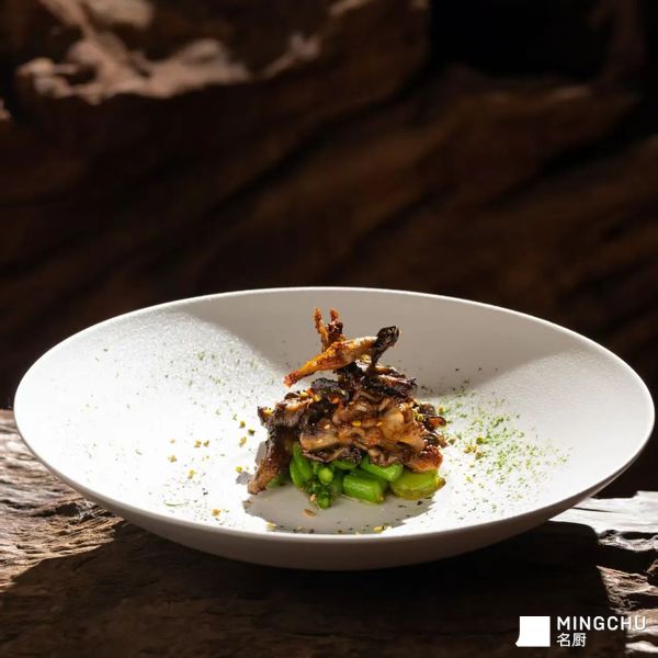 当炭火燎过新鲜舞茸与野山菌的裙边,焦脆表皮下锁住汁水奔流的野蛮香气。芦笋与马蹄以青翠与雪白的脆爽介入,解构浓烈。一炙一凉之间,是山野在冬季炭火上最本真的狂欢。