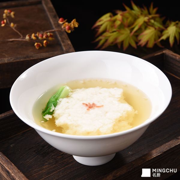 鸡豆花是四川地区以鸡肉和火腿为原料的特色传统名菜,至今已有百余年的历史,被视为川菜中的“看家菜”。其制作讲究刀工、火候与耐心,以繁复工序换取极致清雅的风味表达。成菜颇有特色,为川菜中清淡醇厚的代表菜之一。