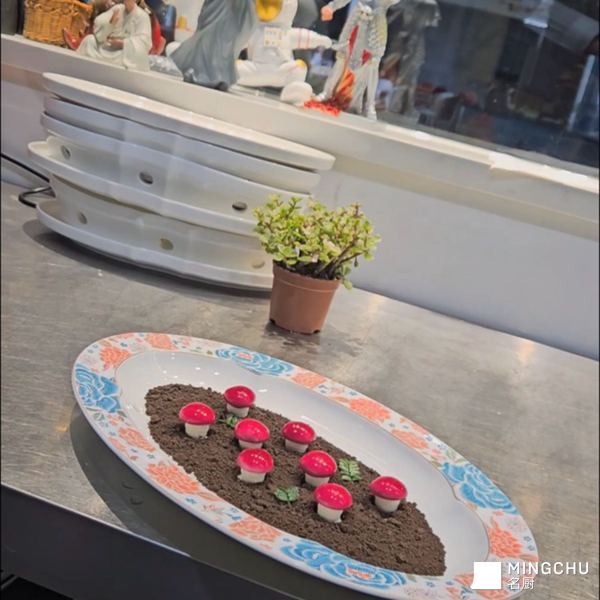体验感强:以“挖取蘑菇”的互动式吃法增加用餐乐趣,同时用迷你盆栽等点缀强化山野氛围,让一道菜成为一场微型的自然探索之旅。