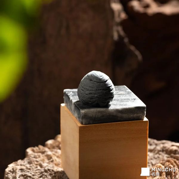 墨色酥皮如覆雪炭木,经慢火细细烘出焦脆裂纹。内里是山核桃的油润、霜柿的蜜软与黑芝麻的焦香,三味交融,凝成一口深藏的、扎实的甘醇。破开脆壳的刹那,温暖便层层漾开。