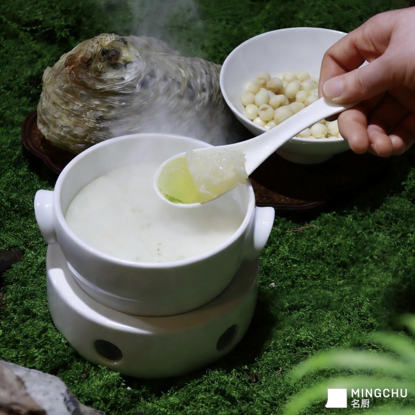 汤色乳白如脂,入口绵滑温润。刺豚鱼胶质绵密,赋予汤体醇厚挂唇的质感;鸡头米软糯弹润,冰川瓜清脆解腻,口感丰富。滋味鲜甜交融,暖身滋补,余味悠长。