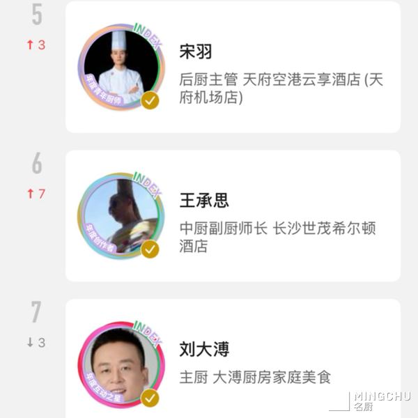 名厨达人月榜TOP05