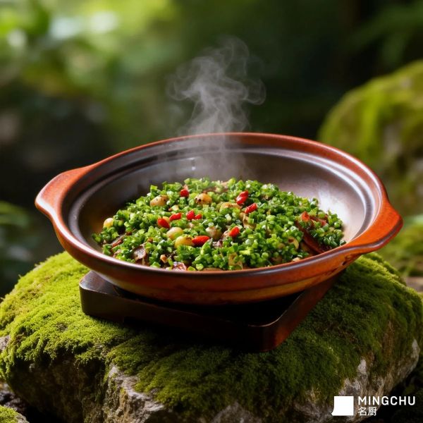 立春节气菜春笋、刀板香、东莞腊肠、鲜香菇、小土豆同焖,生抽与松露调味。冬之储藏(腊味)与春之新生(笋菇)在一锅中交融,松露添大地深邃气息。韭菜苔切碎炒香盖帽,米饭吸饱肉香与菌鲜,锅巴焦香。此饭名寓时序更迭,是立春家宴的压轴,一口知四季,一碗迎新春。