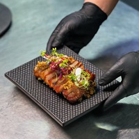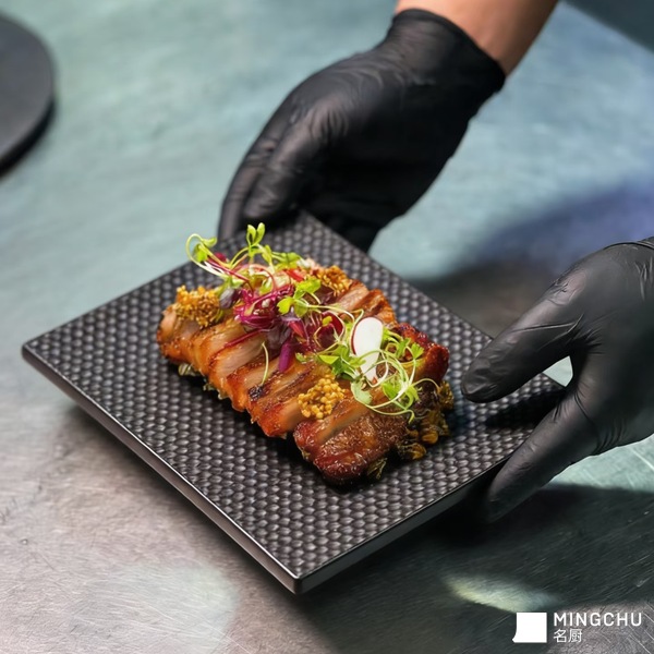 这道菜将中式食材与西式技法完美结合。五花肉经过 24 小时的低温慢煮,再高温炙烤至外皮酥脆如纸,内里却软糯多汁。搭配的芥末籽酸黄瓜酱,以其明亮的酸度和颗粒感,瞬间唤醒味蕾,让整道菜的风味层次更加立体。