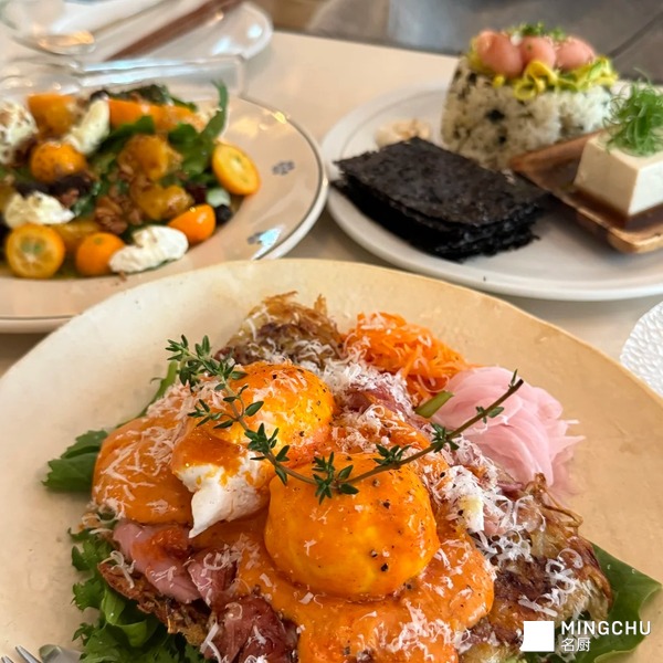 如果你吃腻了炸鸡烤肉牛骨汤,又秉持着来都来了的心态想寻摸点韩式特色的小店,安利这里。 豆腐包饭相当韩式,拿一片紫菜,包一点米饭、浇汁豆腐、鱼泥,口感比看起来入味很多。韩国人做沙拉也很有灵魂,金桔、芝麻菜拌一点酸奶酪,浸了一些橘子汁,清甜不腻,撒上的坚果碎让味蕾升华了。班尼迪克蛋是经典的菜式,但也做了创新,下面是煎的土豆丝饼,喷香。 整体很推荐,加上室内面积挺大的,所以去的时候不需要等位,大大增加体验感