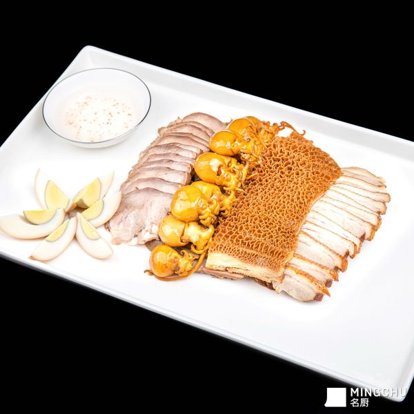 甄选上等猪舌、鲜嫩鸭脯肉、脆韧金钱肚、弹嫩小墨鱼,搭配卤香醇厚的卤蛋,以秘制老卤慢卤入味,让卤香层层浸透每寸食材。猪舌头紧实弹牙、胶原满满;鸭脯肉咸鲜适口、肉质细腻;金钱肚脆爽有嚼劲;小墨鱼Q弹鲜嫩;卤蛋沙糯香浓、蛋香四溢。摆盘精致考究,是宴请、聚餐的绝佳之选,一口尽享多重卤味层次,回味悠长。