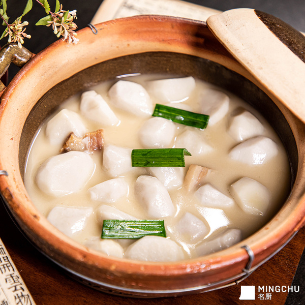 选用口感粉糯的芋艿,咸肉的油脂在慢蒸过程中完全渗入芋艿,使芋艿吸饱咸香、变得油润软糯,入口即化。两者一清淡一咸香,相得益彰。
