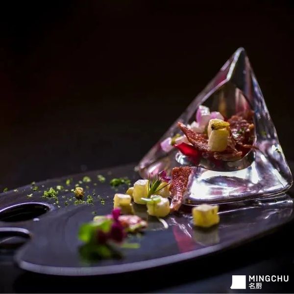 透明金字塔盛起俄式土豆沙拉的绵密,香酥培根在高温下逼出油脂,脆得咬开时满是烟火香气,洋葱的微辛与土豆的软糯温柔中和,最后以芥末酱的清冽提味,每一口都是俄式传统与现代摆盘的碰撞,冷与暖、脆与绵,在舌尖层层绽放。
