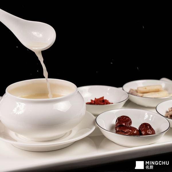 这是一道兼具美味与养生价值的粤式经典药膳——党参煲猪肚:食材与风味:以新鲜猪肚搭配补气健脾的党参,辅以红枣、枸杞等药食同源食材慢火细煲。猪肚软嫩弹牙,汤色清亮奶白,入口醇厚鲜香,党参的淡甘与猪肚的鲜美相互交融,余味悠长。养生功效:猪肚富含蛋白质与多种矿物质,搭配党参能起到健脾益气、温中和胃的作用,红枣与枸杞更添滋补之力,适合脾胃虚弱、气血不足人群,秋冬食用暖身又养胃。出品呈现:汤品盛于雅致白瓷炖盅,仪式感十足,舀起一勺汤汁浓稠顺滑,尽显粤式煲汤的精致与用心。