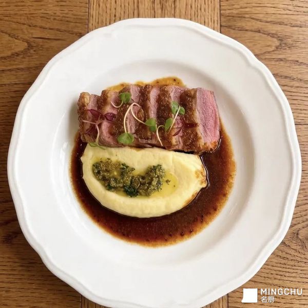 以“低温慢煮”为核心工艺,打破传统高温煎制易导致肉质干柴的局限。通过精准控温,使鸭肉从内到外均匀受热,锁住汁水与风味,再以高温瞬间炙烤表皮,形成“外焦里嫩”的对比口感,诠释现代烹饪中对精准与创新的追求。