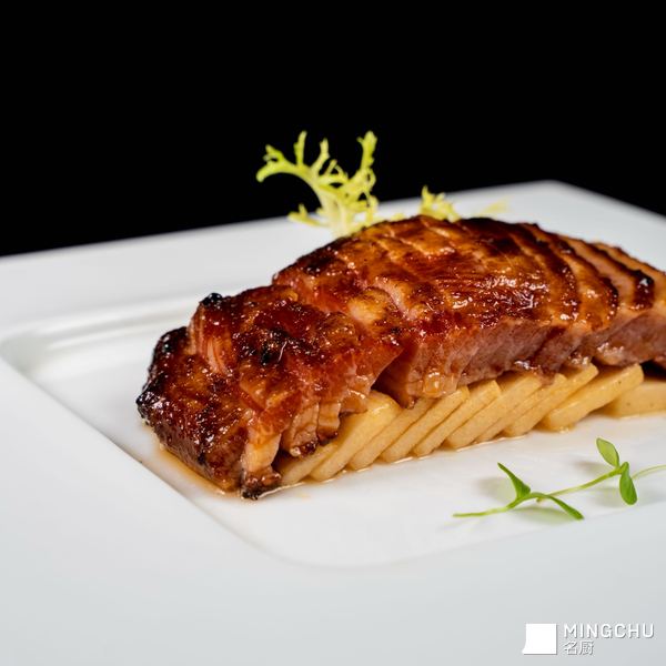 炭烤风味菜,选用猪爽肉(猪颈肉)为原料,是猪身上仅占2%的黄金部位。经秘制腌制、果木炭烤工艺烹制而成,是融合传统炭烤技法与现代精致摆盘的匠心之作。