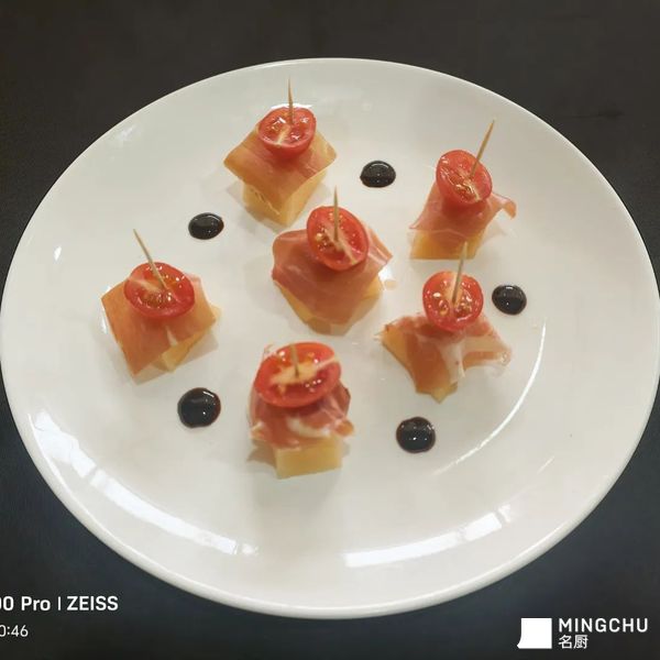 今天分享一道非常简单的一道小吃,可以作为下酒菜(最好搭配香槟或红酒)蜜瓜的甜定蜜抵消了帕尔马火腿的咸味,并且让帕尔马火腿口感更佳