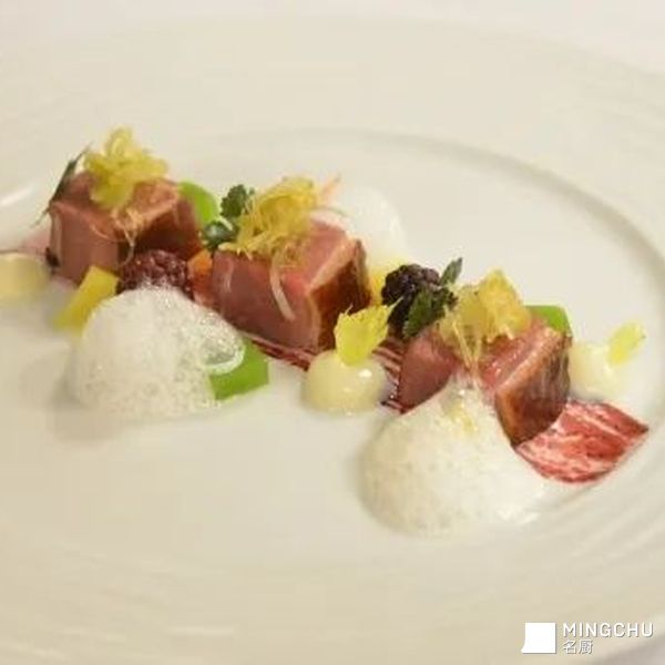 红酒烟熏鸭胸配橙香奶泡