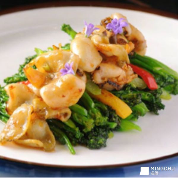 正宗粤式小炒讲究镬气、鲜嫩、薄芡、亮油,鲍鱼要爽弹不韧,西兰花苔脆嫩清甜,全程大火快炒,芡汁紧裹不泄水,咸鲜回甘,是经典高档粤菜小炒。
