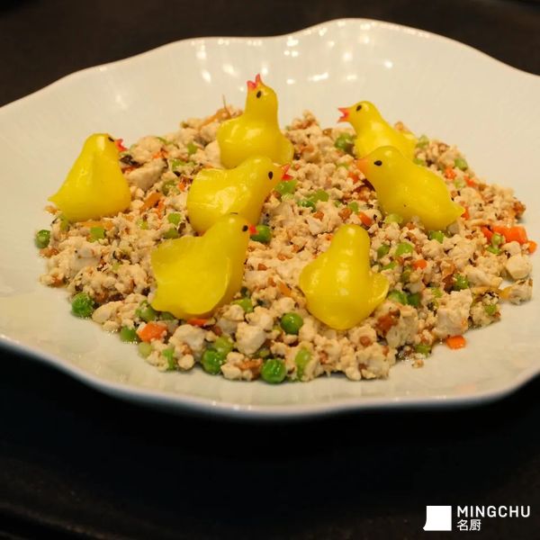 点心与热菜结合从视觉上给人更为逼真形像和传统鸡哈豆腐味型上做了改变