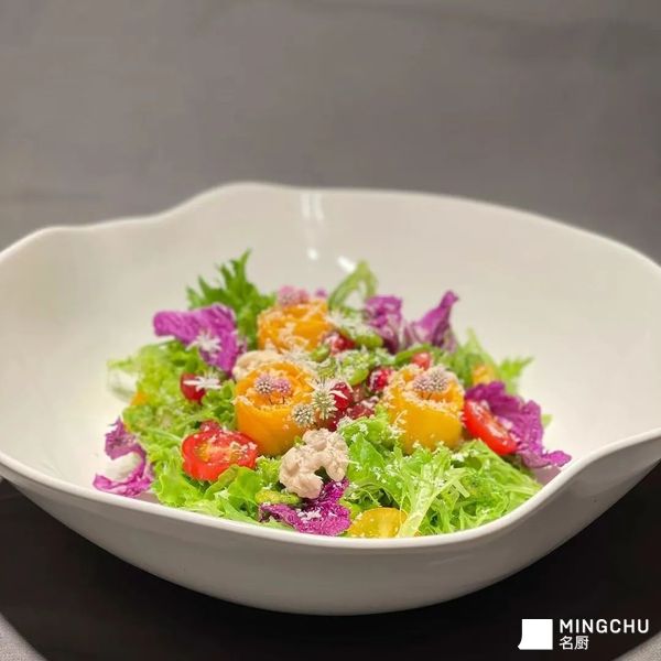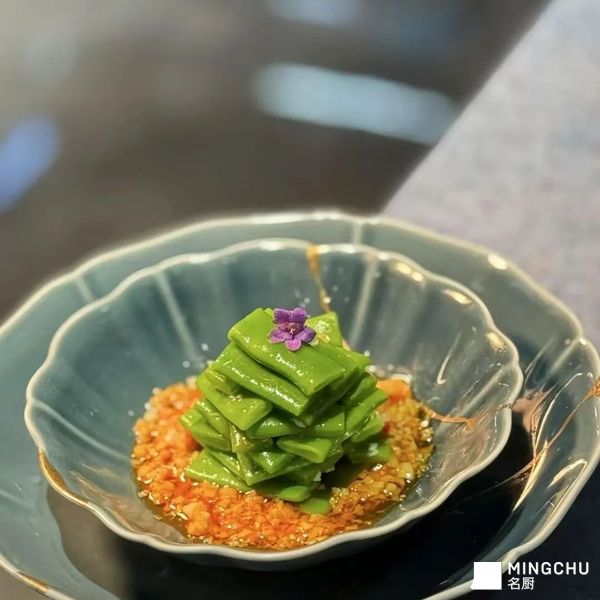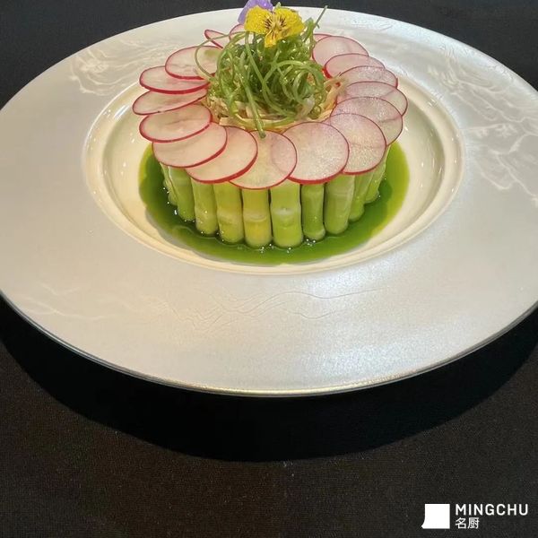 绿葱油脆笋,芒果沙拉,金蒜扁豆,黑松露水果芥兰。
