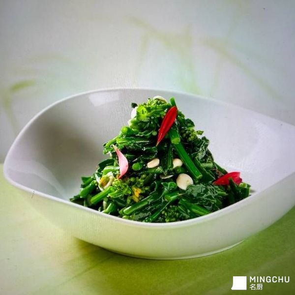 养生凉菜、春季时令菜、药食同源创意菜。选用杂交培育的板蓝根青菜(菘油1号),非药材,是富含高维生素C的健康新食材。杏仁的香脆坚果感与长生苗的清脆鲜嫩完美融合,咸鲜适口,回味甘甜。“长生苗”寓意健康长寿,杏仁象征幸福圆满,适合祝寿、宴请场合。清香微咸,爽口解腻。