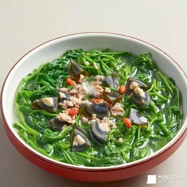 松花蛋肉沫煮菠菜