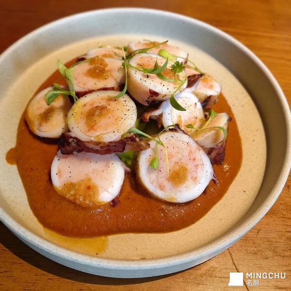 食材特点:枪油鱼肉质细嫩弹滑,富含优质蛋白与不饱和脂肪酸,烟熏甜椒酱经低温慢熏,保留甜椒清甜并赋予独特烟熏香,二者搭配既凸显海鲜本味,又借酱香丰富层次,食材天然性与风味互补性极强。