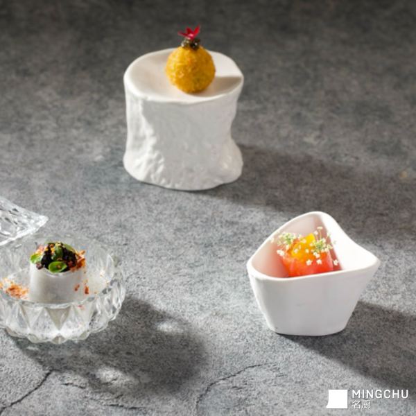 以咸、浓、酸为序,层层递进打开味蕾咸选用福建霞浦头水紫菜,卷裹高山脆嫩腌萝卜,搭配海盐泡沫,突出海洋清咸本味,柔嫩与爽脆交织浓黄油土豆泥制成外酥内糯的土豆球,内馅包裹黑松露,顶点缀鱼子酱,香气浓郁醇厚酸腌渍圣女果的清爽酸香搭配绵密芒果布丁,酸甜柔和,平衡味蕾,干净利落