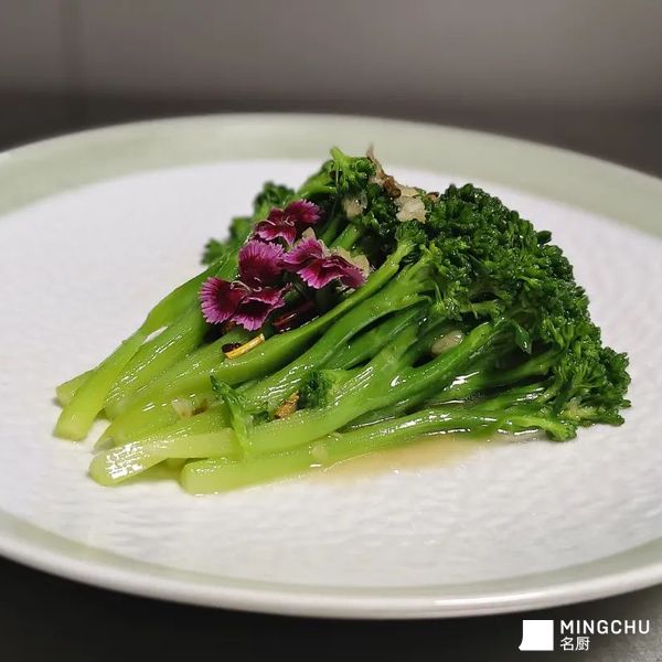 “石斛汁拌西蓝苔”是一道养生的菜。它结合了石斛的胶质与清香,以及西蓝苔的脆嫩。