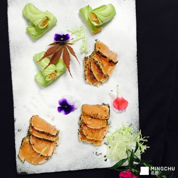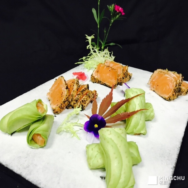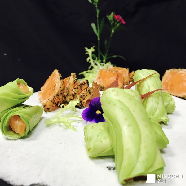 此冷菜颜色艳丽,营养搭配合理,三文鱼口感结实饱满润滑。卷牛油果的三文鱼丰盈爽滑有化口的感觉,在咀嚼的时候会有股浓浓的牛油果香味。黑胡椒碎煎三文鱼细腻爽口齿留香。