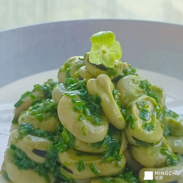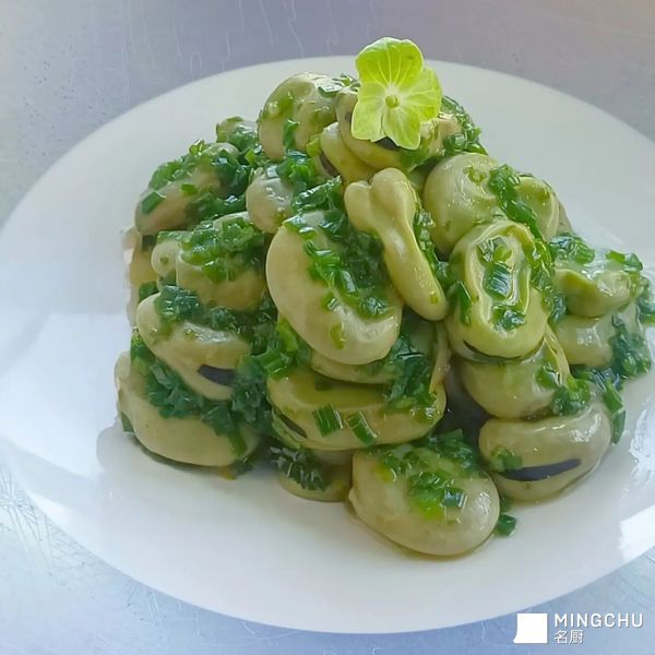 这和时节,是刚刚鲜蚕豆上市的时节,蚕豆我们四川人也叫胡豆,吃起来软糯可口,非常好吃,今天我就用2王蚕豆和山里的野小葱应季食材创新一道菜品,