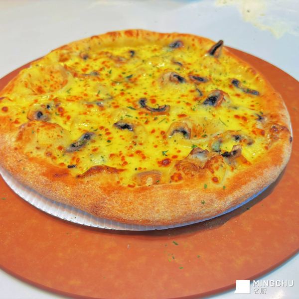 经典意式素食披萨(Pizza Funghi),以多种菌菇为核心,主打鲜、香、浓的菌菇本味与芝士奶香风味:菌菇经橄榄油炒香,鲜、嫩、带嚼劲,浓郁菌香+芝士奶香,鲜咸回甘(鲜味/Umami)。口感:饼底松软,菌菇多汁弹牙,芝士拉丝绵密。