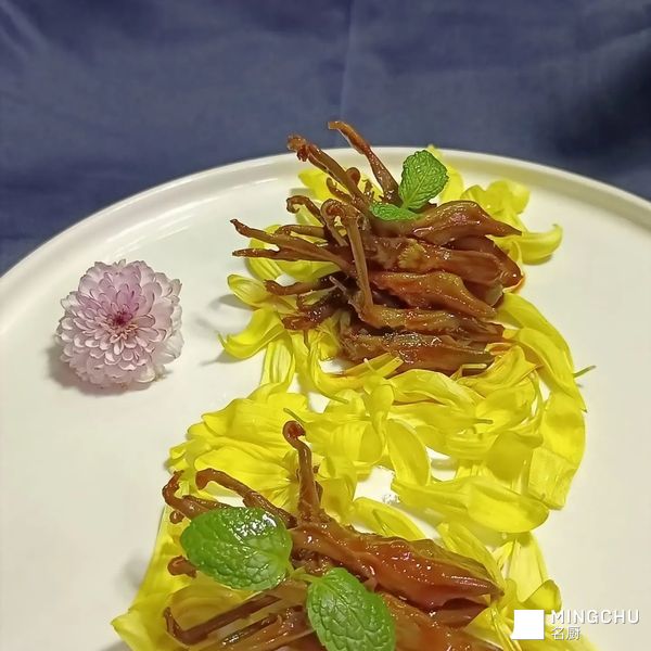 鸭舌我们用卤水卤制出来,好吃酱香味十足,在用鲜菊花创新接合一下,菜品价格,也就提升一下。