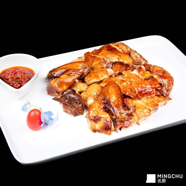 甄选河源东江流域万绿湖畔散养走地土鸡,遵循客家百年古法匠心烹制。以八角、桂皮、陈皮等十余种天然香料,经低温慢腌充分入味,再以荔枝果木炭火精准控温慢烤,全程手工翻转,让每一寸鸡皮都受热均匀,最终呈现出琥珀金亮、酥脆如鳞的绝佳品相。
