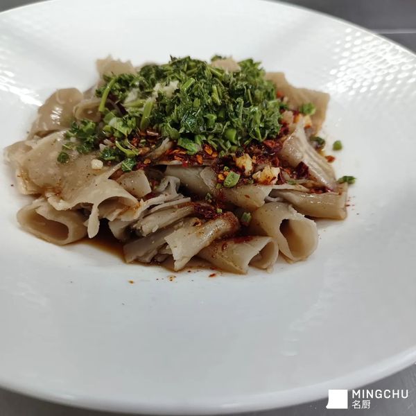 莜面卷的劲道爽滑,香椿的新鲜,油泼激发的香味,融合在一起,美